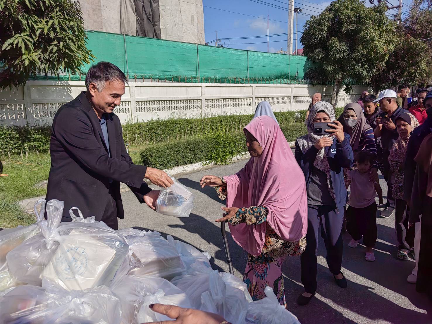 วันที่ ๑๑ มีนาคม ๒๕๖๙ เวลา ๑๕.๓๐ น. นายสมพงค์ เพ็งระวะ อุตสาหกรรมจังหวัดปัตตานี พร้อมด้วยเจ้าหน้าที่สำนักงานอุตสาหกรรมจังหวัดปัตตานี ร่วมแจกอาหารและเครื่องดื่มให้แก่ญาติผู้ป่วยที่มาเฝ้าไข้ และประชาชนทั่วไป เพื่อละศีลอดเดือนรอมฎอน รวมจำนวน ๑๐๐ ชุด ณ เรือนชบา จวนผู้ว่าราชการจังหวัดปัตตานี