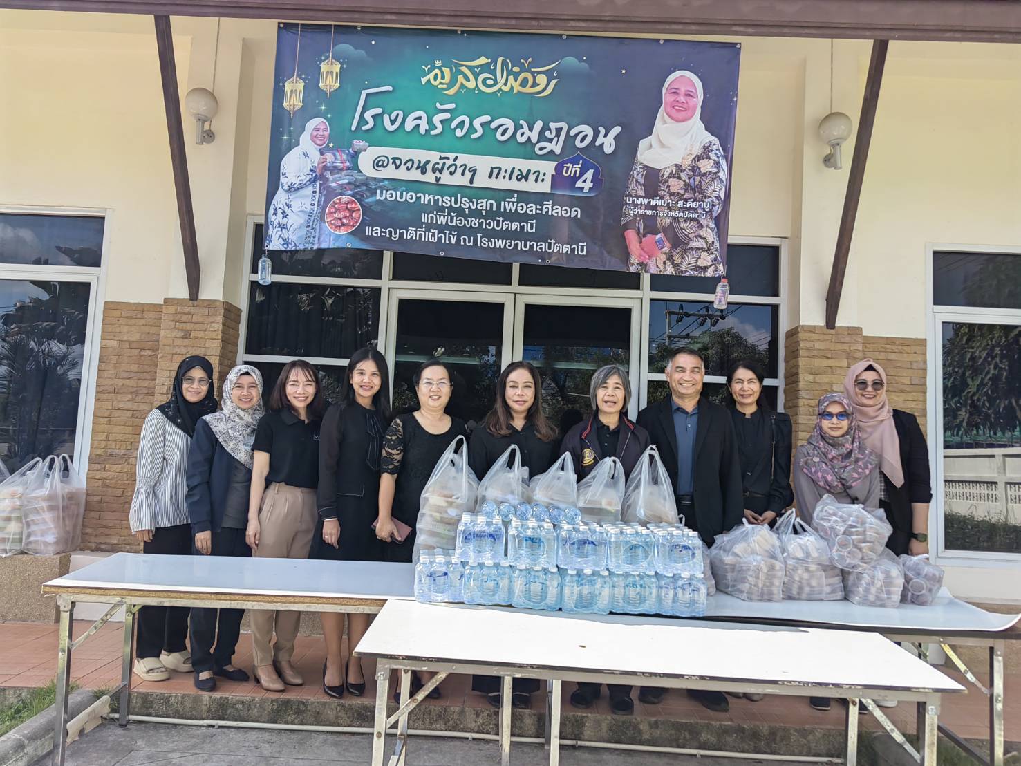 ร่วมแจกอาหารและเครื่องดื่มให้แก่ญาติผู้ป่วยที่มาเฝ้าไข้ และประชาชนทั่วไป เพื่อละศีลอดเดือนรอมฎอน