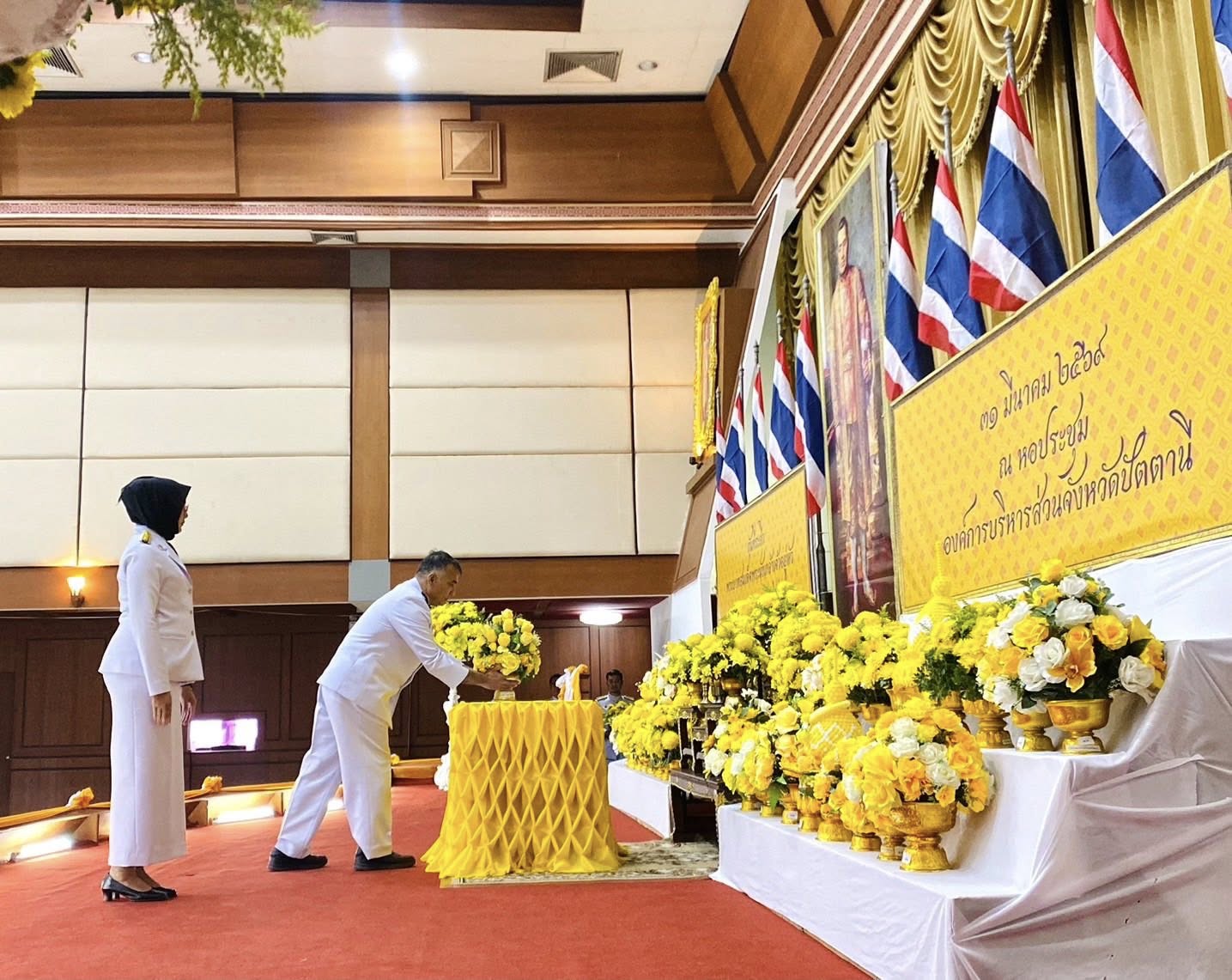วันอังคารที่ ๓๑ มีนาคม ๒๕๖๙ เวลา ๐๗.๓๐ น. นายสมพงค์ เพ็งระวะ อุตสาหกรรมจังหวัดปัตตานี พร้อมด้วย ข้าราชการ และเจ้าหน้าที่ ร่วมพิธีวางพานพุ่มดอกไม้ถวายราชสักการะ เนื่องในวันที่ระลึกพระบาทสมเด็จพระนั่งเกล้าเจ้าอยู่หัว พระมหาเจษฎาราชเจ้า เพื่อน้อมรำลึกในพระมหากรุณาธิคุณที่ทรงมีต่อปวงชนชาวไทยทั้งในด้านการศาสนา การศึกษา สร้างความร่มเย็นเป็นสุขแก่ประชาชนทุกหมู่เหล่าจวบจนปัจจุบัน โดยมีนายสนั่น สนธิเมือง รองผู้ว่าราชการจังหวัดปัตตานี เป็นประธานในพิธี ณ หอประชุมองค์การบริหารส่วนจังหวัดปัตตานี อำเภอเมืองปัตตานี จังหวัดปัตตานี